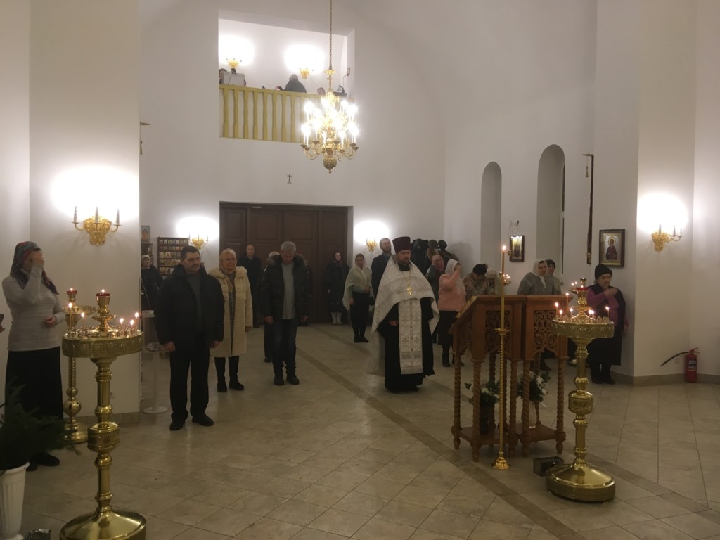 На Всенощном бдении молилось 32 человека, на Божественной литургии — 56, ко Святому Причастию приступило 8 человек.