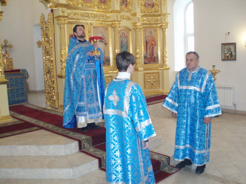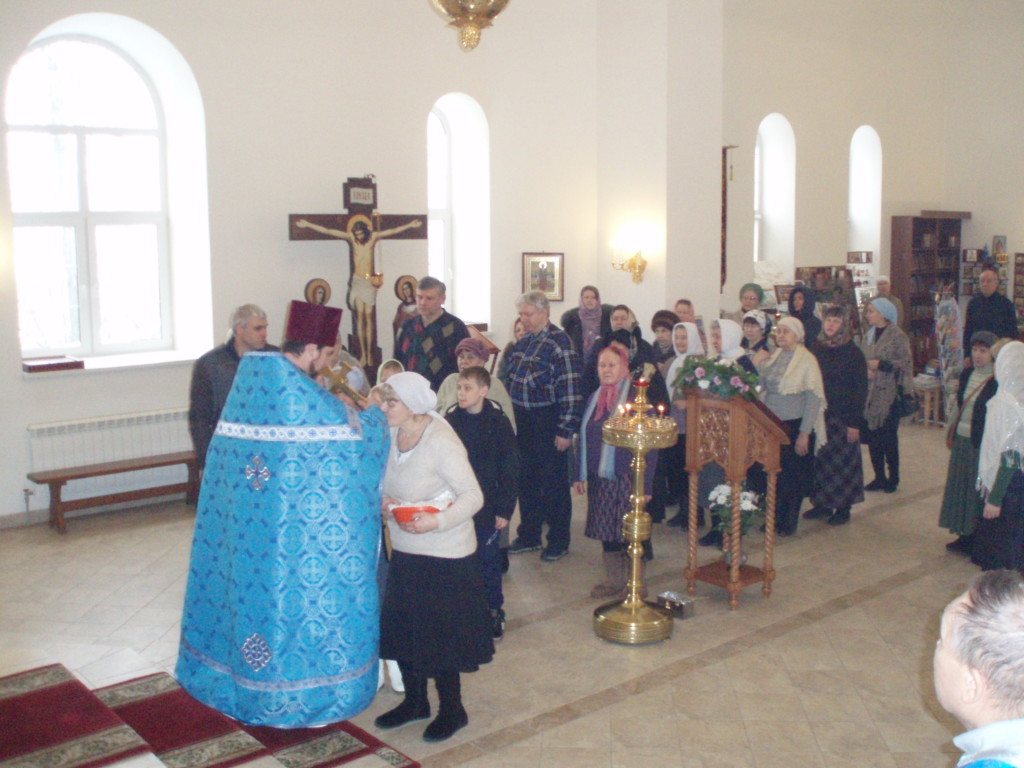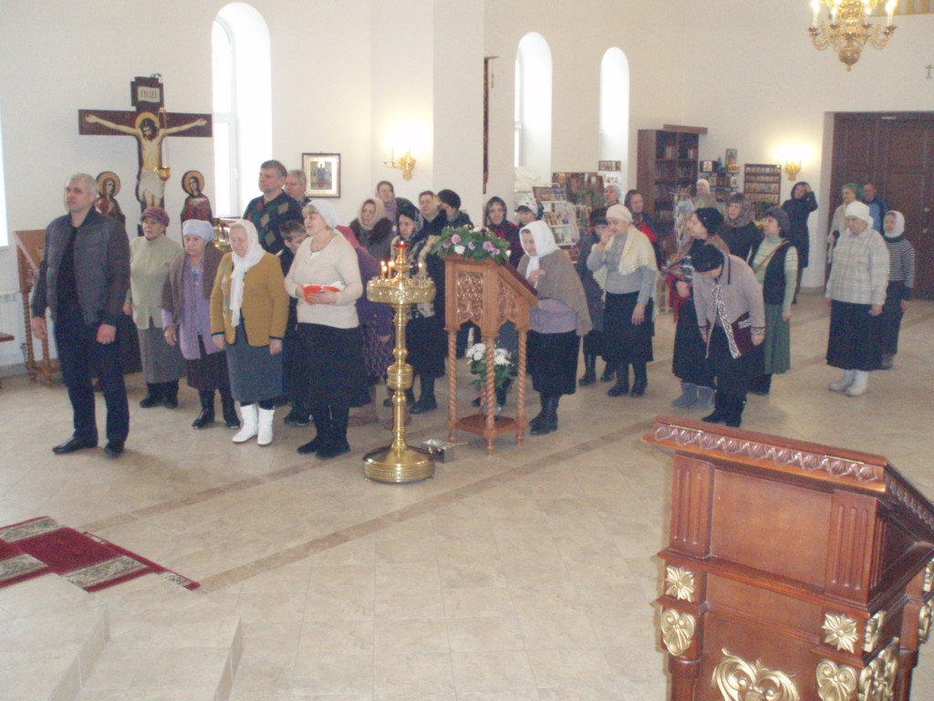 В праздник Сретения Господня в нашем храме состоялись богослужения: Всенощное бдение и Божественная Литургия, которые совершил настоятель прихода священник Михаил Поликаровский. За вечерним богослужением молилось 25 человек, за Литургией — 43, из них приступило ко Святым Христовым Тайнам 11 человек. По окончании Литургии было освящено коливо, а также священник зачитал обращение Патриарха Кирилла по случаю празднования дня Православной молодежи.