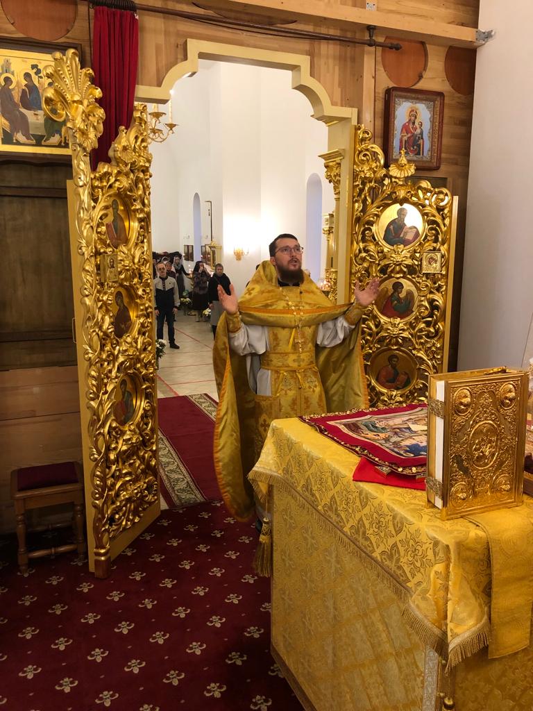 На Божественной литургии, на сугубой ектении, были вознесены молитвенные прошения в связи с угрозой распространения коронавирусной инфекции.