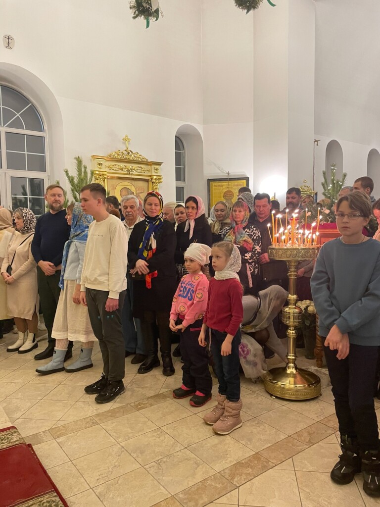 По окончании Божественной Литургии было совершено славление. Затем все прихожане разделили праздничную трапезу под совместное пение колядок.
