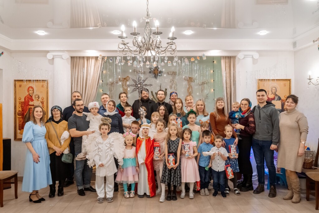 Воспитанники показывали спектакль о Рождественской звездочке, пели песни и колядки, рассказывали стихи, водили хоровод под балалайку с Анастасией Боровской, играли в игры и, конечно же, получили подарки.